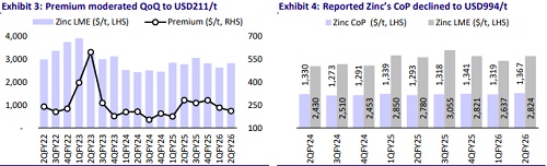 * Zinc CoP for the quarter stood at USD994/t, which declined 7% YoY/2% QoQ due to softened input commodity prices and higher by-product realizations.