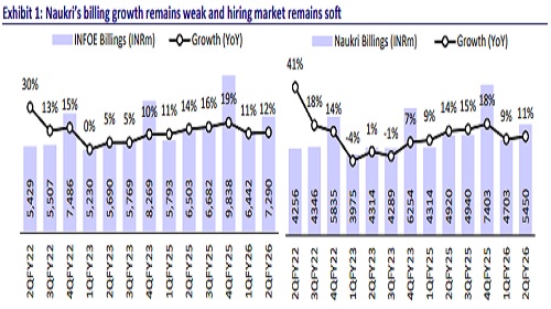* Recruitment business: Recruitment billings improved sequentially; engagement levels remained healthy despite a cautious hiring environment. Naukri India continues to be the largest contributor, accounting for ~75-80% of recruitment revenue, though hiring sentiment in this market remains lukewarm.