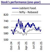 * Demand has remained steady but has yet to show material pickup. JUBI expects demand recovery to begin from 3QFY26, supported by GST reforms. Moreover, strong participation in recent sale events such as Big Billion Days, etc., indicates a positive consumer spending momentum. The GST 2.0-driven relief is likely to boost disposable incomes, benefiting discretionary categories such as QSR. JUBI believes that there is ample underlying demand, and the right combination of location, pricing, and value will be a key enabler to unlock growth, mainly in rural markets. That said, JUBI continues to actively invest in its products and brands to stimulate growth (advertising in major events like the Asia Cup Cricket tournament).