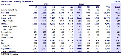 * We expect consolidated net sales to grow 3% YoY, led by volume growth of 5% in 2QFY26.