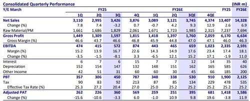 * We expect consolidated net sales to grow 6% YoY, led by volume growth of 5% in 3QFY26.