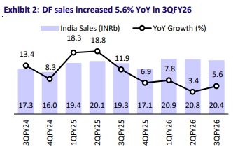 ? DF sales grew 5.6% YoY to INR20.4b (29% of sales). Rx business rose 10.9% YoY.