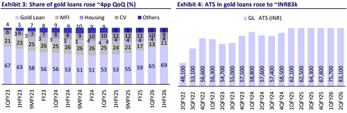 * MGFL continues to align the gold loan interest rates with its large peers, which has resulted in a sharp moderation in its gold loan yields. However, the impact will be partially mitigated by declining CoF, which fell by ~12bp in 2QFY26 and is expected to further trend downward in the coming quarters.