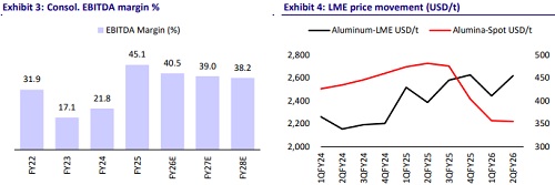 * Management guided alumina volume of ~1,200-1,280kt and aluminum sales of 470kt in FY26.