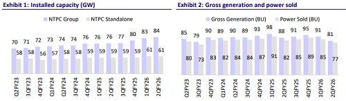 NTPC reported standalone revenue of INR392b in 2QFY26, 13% below our estimate of INR453b (-3% YoY), owing to subdued demand.