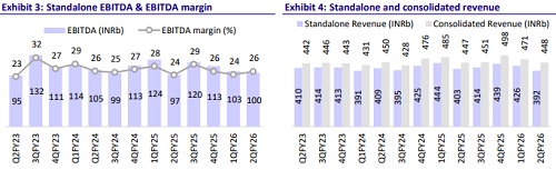 * Average tariff was INR4.90/unit in 1HFY26 vs. INR4.67 in 1HFY25.