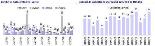 * Total units booked in the quarter stood at 158, which was flat YoY and down 13% QoQ. In 1HFY26, a total of 339 units were booked, up 14% YoY.