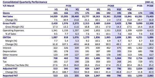 * We model three new store additions, taking the store count to 195 in 3QFY26.