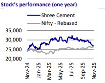 * Shree Cement (SRCM) has been comparatively slower than its peers in terms of capacity expansion in one of its core markets in the north region, which led to market share loss for SRCM and also risks its pricing strategy over the medium term. SRCM’s capacity share in the north region declined to ~22% in FY25 from the peak of ~24% in FY19, and it is further estimated to decline to ~19% by FY28E, given aggressive expansion by peers.