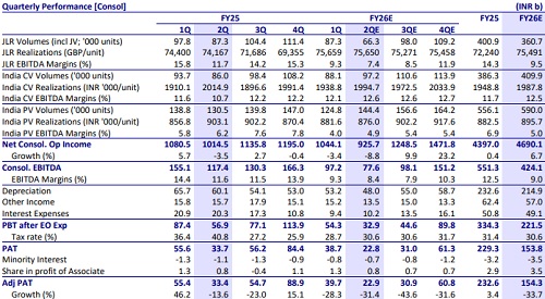 * India PV margins are likely to pick up QoQ due to improved volumes partially offset by high discounts. We expect margins at 4.9% (-130bp YoY). India CV margins to improve 50bp QoQ and 190bp YoY to 12.6%.