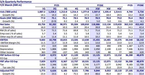 ? TVS continued to outperform 2W peers with 23% YoY growth in 2Q, led by strong growth in scooters (+30%), motorcycles (+20%) and 3W (+41%). Exports rose 40% YoY. ? Led by strong volume growth, we expect EBITDA margin to expand 50bp QoQ (+130bp YoY) to 13%. ? We expect TVSL to post 49% YoY growth in earnings in 2Q.