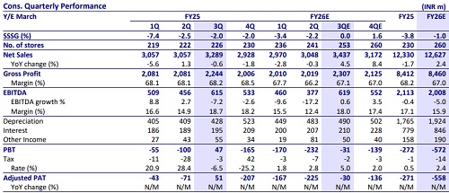 * We expect same-store sales to be flat YoY; expect 11 store additions in 3Q, taking the total count to 253.