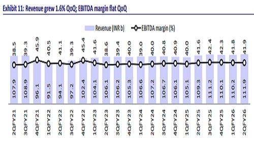 * Capex moderated further to INR17.5b (vs. INR 24.4b in 1QFY26).