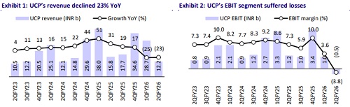 UCP revenue dips ~23% YoY; UCP loss at INR458m