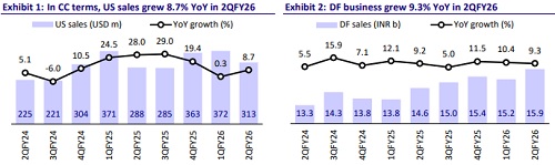 * India sales (37% of sales), comprising DF and consumer businesses, grew 14.7% YoY to INR22.3b. Within India sales, branded formulations grew 9.3% YoY to INR15.9b. Consumer wellness grew by 31% YoY to INR6.4b.