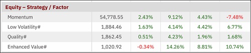 Among factor indices, Momentum gained 2.43% in November, outperforming both Low Volatility and Quality. While Value posted a negative return for the month, it continued to outperform over the 3, 6- and 12-month periods.