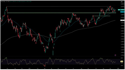 As long as it sustains above these levels, market sentiment is expected to remain constructive and upward-biased. On the upside, immediate resistance is placed at 26,000, followed by 26,200 and 26,400. On the downside, support is seen at 25,900 and then 25,800, with a break below 25,700 likely to attract additional selling pressure. Given the current market structure, a buy-on-dips strategy remains appropriate, though traders should maintain strict stop-losses due to prevailing volatility.