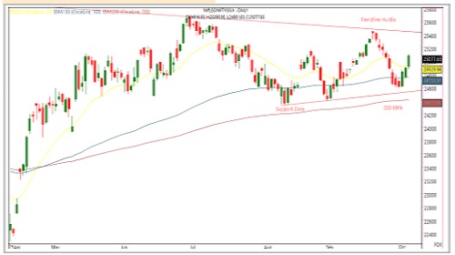 * Technically, the Nifty has reclaimed its short-term moving average (20-DEMA) and looks poised to test 25,150, with potential to extend the move toward 25,400.