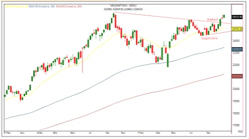 * The index closed in positive territory, maintaining levels above key moving averages, reinforcing a bullish undertone.