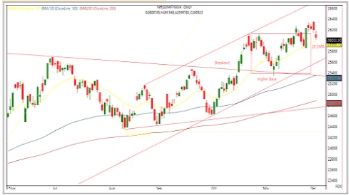 * The Nifty is once again approaching its immediate support zone near the 20-DEMA around 25,950, with the trendline support at 25,900 providing additional cushion.