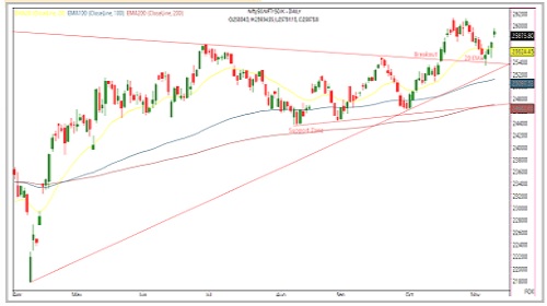 * On the technical front, the Nifty has successfully reclaimed the 25,800 resistance level, with the next target seen around the 26,000–26,100 zone.
