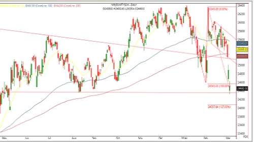* The Nifty opened gap down and remained range bound for most part of the session and, with only brief recovery attempts during intraday trade and finally settled near the 24,480.50 mark, down around 1.55%,
