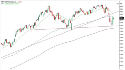 * On the index front, the Nifty tested its crucial support at the short-term moving average (20 DEMA) near the 23,500 mark and managed to inch higher.