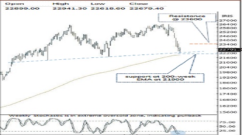 * Further on the weekly timeframe, the stochastic oscillator has witnessed a bullish crossover from the oversold territory is at 9 levels, indicating positive momentum from deeply oversold conditions, with scope for a gradual pullback ahead. Therefore, on should avoid creating aggressive short position at current juncture , as technical pullback from current levels cannot be ruled out.