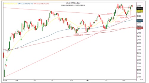 * Going ahead, we expect further consolidation to persist, which would be healthy as long as the Nifty holds above its key short-term support—the 20-DEMA, which currently lies 25,700.