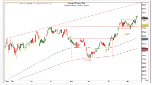 * Immediate overhead resistance is positioned near the 59,500 level, while primary support is established around 58,200.