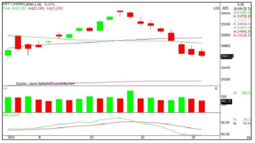 Action: Nifty has an immediate Support at 24540 and on a decisive close below expect a fall to 24470-24400 levels.