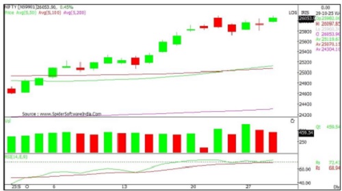 Nifty is expected to open on a negative note and likely to witness range bound move during the day. On technical grounds, Nifty has an immediate support at 25970. If Nifty closes below that, further downside can be expected towards 25900-25840 mark. On the flip side 26110-26180 will act as strong resistance levels.
