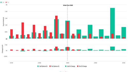 * Call writing is seen at 23600 then 24000 strike while Put writing is seen at 23000 then 23500 strike.