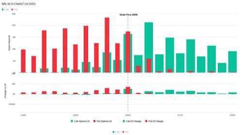 * Call writing is seen at 24900 then 25000 strike while Put writing is seen at 24800 then 24850 strike.
