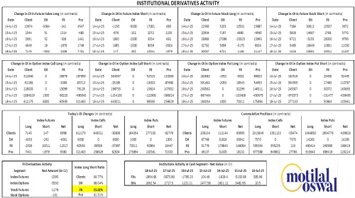 * In the cash market : FIIs were net sellers to the tune of 2895 Cr while DIIs were net buyers worth 1663 Cr.