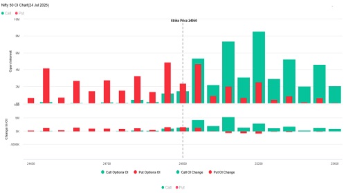 * Call writing is seen at 25100 then 25000 strike while Put writing is seen at 25000 then 24900 strike.