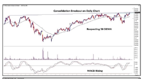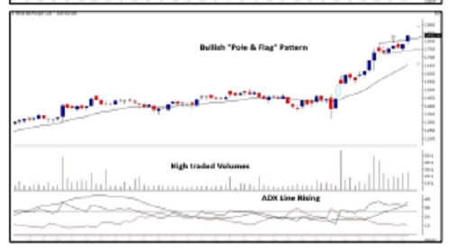 * Bullish Pole & Flag pattern breakout on daily chart.