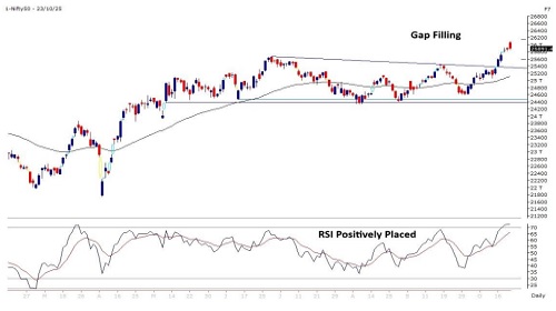 * Option data suggests a broader trading range in between 25300 to 26300 zones while an immediate range between 25600 to 26100 levels.