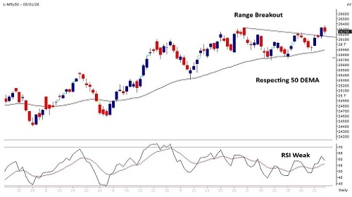 * Option data suggests a broader trading range in between 25800 to 26700 zones while an immediate range between 26100 to 26500 levels.