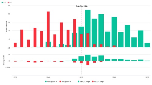 * Call writing is seen at 26300 then 26250 strike while Put writing is seen at 26200 then 26250 strike.