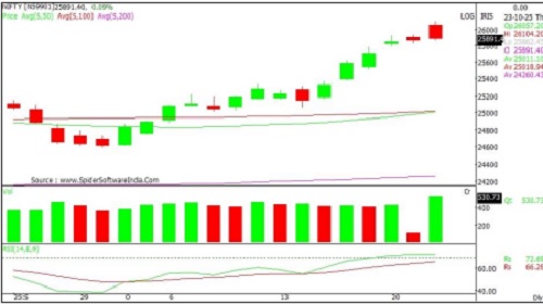 Action: Nifty has an immediate Resistance at 26040 and on a decisive close above expect a rise to 26100-26190 levels.