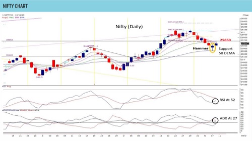 Nifty is nearing the end of correction, with 50-DEMA support near 25320 holding firm at week start - Tradebulls Securities Pvt Ltd