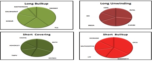 The above second chart shows previous trading day’s change in Nifty options where Additions in OI were seen in 26000, 25900, 25300, 25200, 25100 strike Calls and at 25200, 25100, 25000 strike Puts indicating market is likely to remain Positive in the near term.