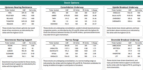Nifty weekly contract has the highest open interest at 24000 CE and 23000 PE while monthly contracts have the highest open interest at 24000 CE and 23000 PE. The highest OI addition was seen at 24000 CE and 23000 PE in weekly and at 23500 CE and 23500 PE in monthly contracts. FIIs increased their future index long holdings by 5.20%, decreased future index shorts by 2.09% and in index options, 25.16% decrease in Call longs, 21.29% decrease in Call short, 27.29% decrease in Put longs and 29.40% decrease in Put shorts.