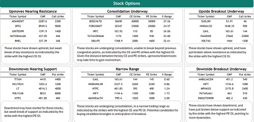 Nifty weekly contract has the highest open interest at 25000 CE and 23000 PE while monthly contracts have the highest open interest at 25000 CE and 23000 PE. The highest OI addition was seen at 24000 CE and 23000 PE in weekly and at 24000 CE and 23900 PE in monthly contracts. FIIs decreased their future index long holdings by 5.85%, increased future index shorts by 3.55% and in index options, 33.08% increase in Call longs, 5.78% increase in Call short, 19.36% increase in Put longs and 8.56% increase in Put shorts.