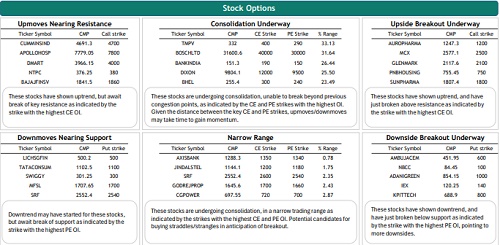 Nifty weekly contract has the highest open interest at 25000 CE and 23000 PE while monthly contracts have the highest open interest at 25000 CE and 24000 PE. The highest OI addition was seen at 24000 CE and 23000 PE in weekly and at 24000 CE and 23300 PE in monthly contracts. FIIs increased their future index long holdings by 4.90%, increased future index shorts by 10.31% and in index options, 10.84% increase in Call longs, 13.05% increase in Call short, 6.22% increase in Put longs and 37.05% increase in Put shorts.