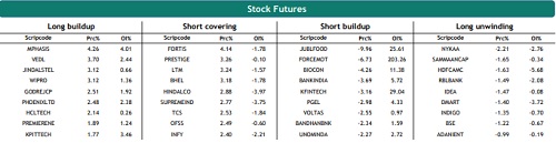 Nifty weekly contract has the highest open interest at 24000 CE and 22000 PE while monthly contracts have the highest open interest at 24000 CE and 23000 PE. The highest OI addition was seen at 24000 CE and 22000 PE in weekly and at 24000 CE and 23000 PE in monthly contracts. FIIs increased their future index long holdings by 4.41%, decreased future index shorts by-1.71% and in index options, 24.54% decrease in Call longs, 19.25% decrease in Call short, 19.93% decrease in Put longs and 30.96% decrease in Put shorts.