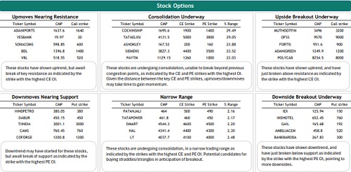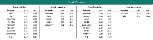 Nifty weekly contract has the highest open interest at 25000 CE and 23000 PE while monthly contracts have the highest open interest at 25000 CE and 24000 PE. The highest OI addition was seen at 25000 CE and 23000 PE in weekly and at 25000 CE and 23000 PE in monthly contracts. FIIs decreased their future index long holdings by 53.97%, decreased future index shorts by 26.04% and in index options, 58.77% decrease in Call longs, 36.26% decrease in Call short, 44.54% decrease in Put longs and 58.08% decrease in Put shorts.