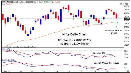 Nifty : Falls For Third Straight Session; Support Seen at 50 DEMA(25832)