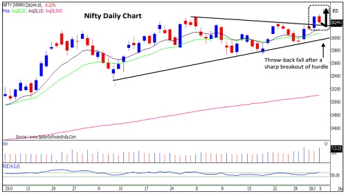 Nifty : The market is in a consolidation mode post decisive breakout. Higher possibility of bounce back from near the crucial support of 26200-26150
